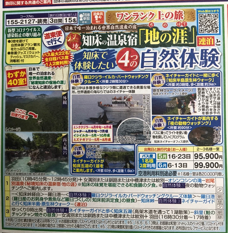 【羽田空港発着】日本で唯一の泊まれる世界自然遺産 秘境知床の温泉宿「地の涯」連泊と知床で体験したい4つの自然体験3日間