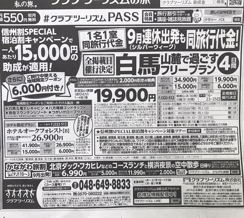 当ツアーは、長野県による「信州割SPECIAL」による支援の対象です。お客様には、支援金15,000円を差し引いた「お支払い実額」をお支払いいただきます。
