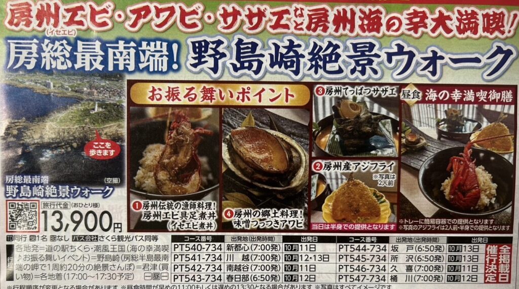 『房州エビ(イセエビ)・アワビ・サザエなど房州海の幸大満喫 房総最南端!野島崎絶景ウォーク』【南越谷 出発
