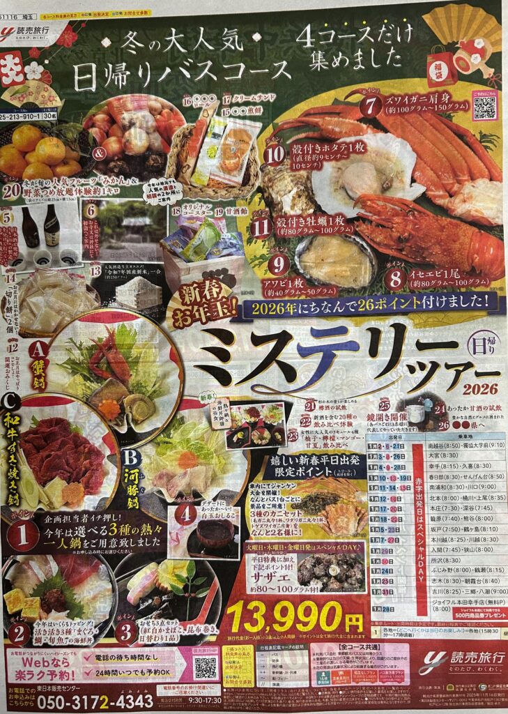 【埼玉県内発】 新春お年玉!ミステリーツアー