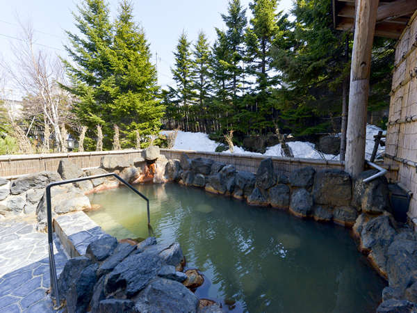 源泉100%かけ流しの露天風呂。四季折々の景色を眺めながら湯浴みをお楽しみください。