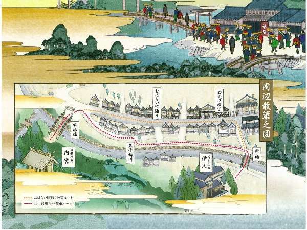 伊勢神宮・夫婦岩 ▲お伊勢さんの入口、宇治橋まではおはらい町を抜けて、ゆっくり歩いて約15分