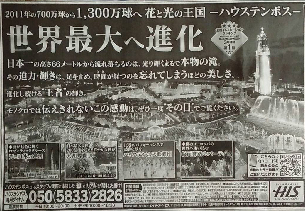 2015/11/28(土)読売新聞朝刊広告欄掲載 旅行企画会社:H.I.S.(エイチ・アイ・エス)の国内旅行