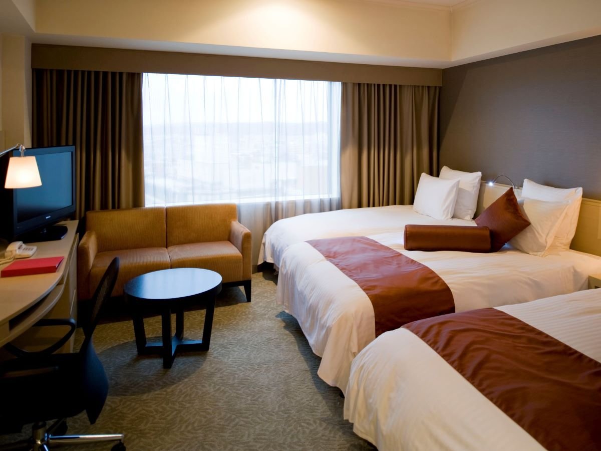 広さ29.3平米のゆったりスタンダードツインルーム・3名様はツインルームにエキストラベッドをお入れしています