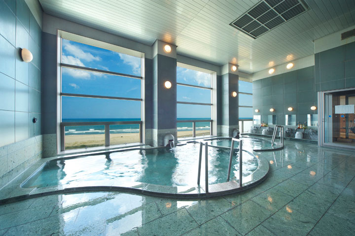 全ての客室より太平洋の大海原がご覧いただけます。また展望大浴場から見る日の出は絶景のひと言。屋内温水プールやイワシなどのランチも人気です。