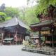三峯神社の神の使いはオオカミのため、鳥居の前には狛犬ではなくオオカミが向かい合って座っています。また、樹齢800年を超える神木の「重忠杉(しげただすぎ)」などもあり、特別な空気を感じることができます。